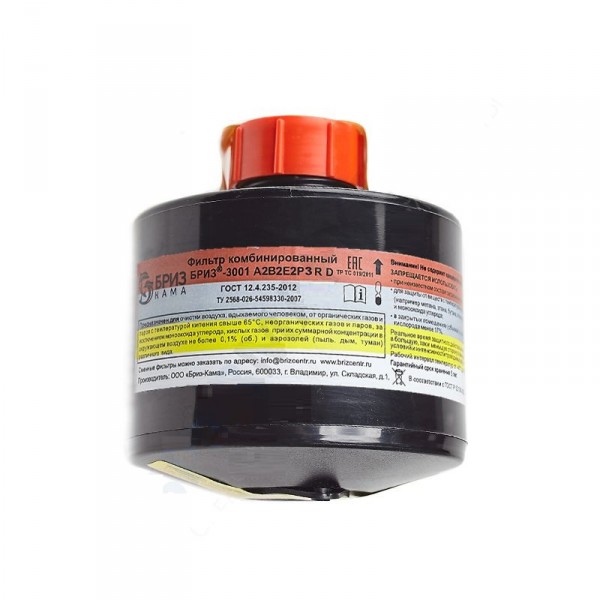 Фильтр комбинированный серии «Бриз-3001» A2B2E2P3 R D применяется для очистки вдыхаемого загрязненного воздуха от: