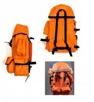 Изготовлен из водоотталкивающей прочной ткани сигнального цвета. Конструкция рюкзака имеет клапан для быстрого открывания,место для вкладывания бирки,внутренние дополнительные карманы и держатели для укладки и закрепления шанцевых инструментов, а также дополнительные наружные карманы в количестве гн менее 6 штук (по два с каждой внешней стороны).