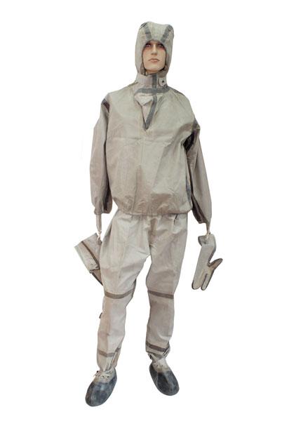 Лёгкий защитный костюм Л - 1 предназначен для многократной защиты кожных покровов человека от воздействия 80%-ной концентрации серной кислоты и воздействия 40% гидрооксида натрия, химического воздействия, вредных биологических факторов и радиоактивной пыли.